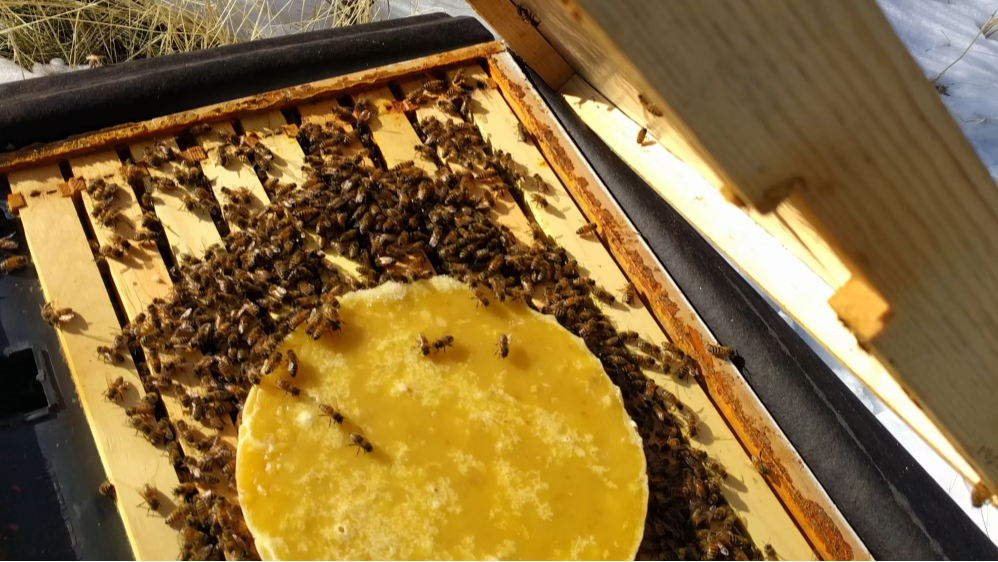 Optional: Once the mixture has cooled to 180°F, add ¼ cup bee pollen and 2 Tbsp Honeybee Healthy. If the mixture is too hot, it will damage the pollen and Honeybee Healthy.